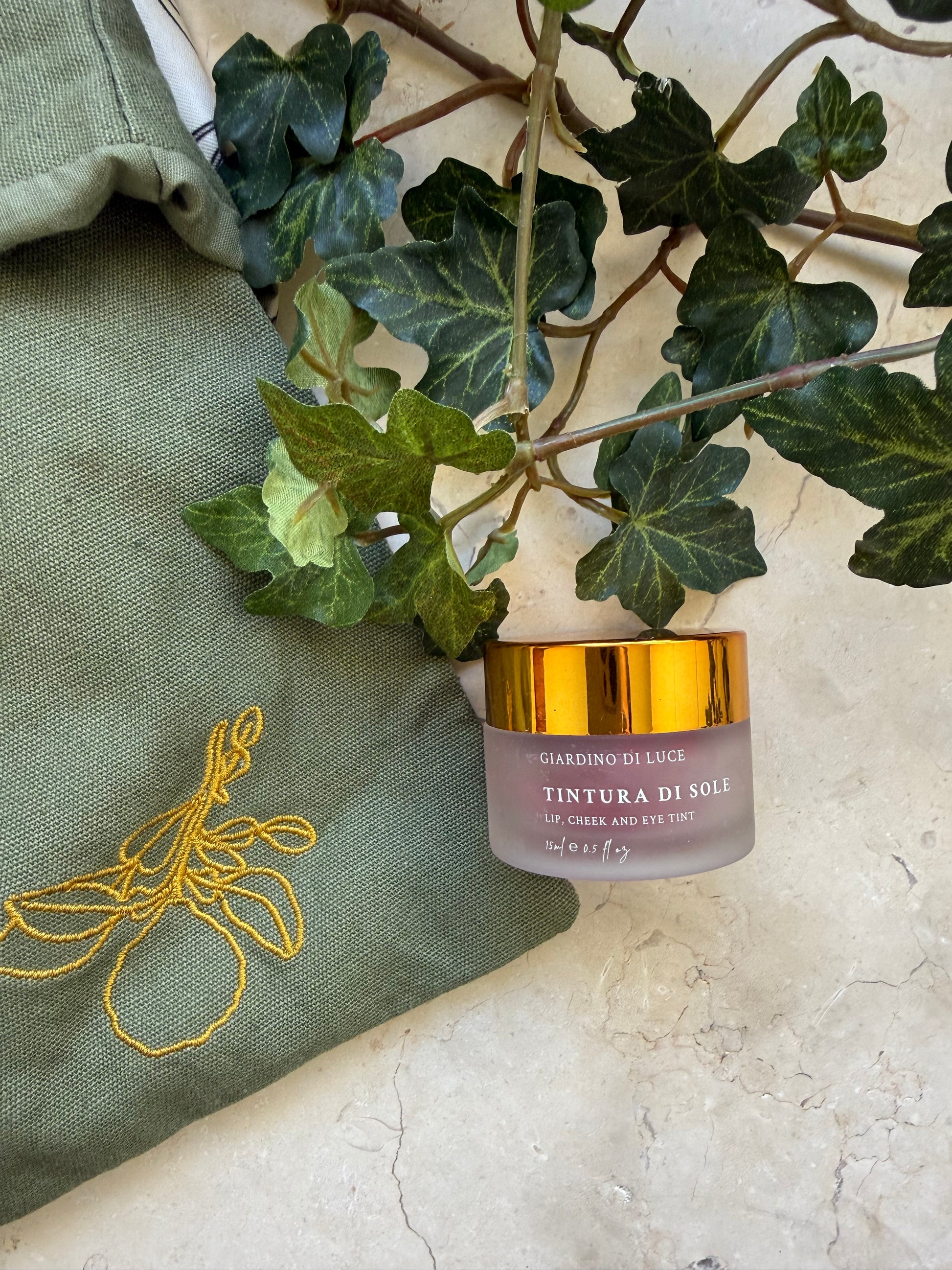 Tintura Di Sole captures the warmth of the Calabrian sun, inspired by the rich hues of ripe figs, this multi use tint melts seamlessly into the skin imparting a soft, sunlit flush of colour to lips, cheeks and eyes.